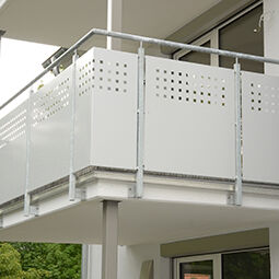 Verzinktes Stahlgeländer mit Alu-Lochblechfüllungen, pulverbeschichtet, für Balkonanlage