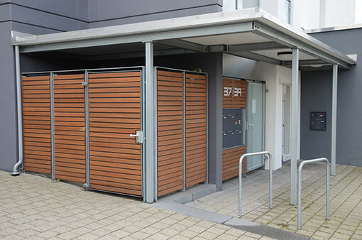 verdecken unschöne Mülltonnen und beugen Fremdmüllentsorgung vor. Überdachungen schützen im Winter vor dem Zufrieren der Deckel und dem Festfrieren des Mülls in den Tonnen. Im Sommer wird übermäßiger Geruchsbildung entregengewirkt.